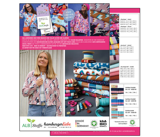Werfen Sie einen Blick auf die kleine und edle, limitierte Hamburger Liebe GLEAM Kollektion - Begeistern Sie Ihre Kunden mit wunderschönen und kuschelweichen Glitzer Jacquards mit Soft-Touch Lurex, edlen und glamourösen GOTS zertifizierten Digital Prints und perfekt kombinierbaren CUFF ME für Ihre grenzenlose Kreativität.